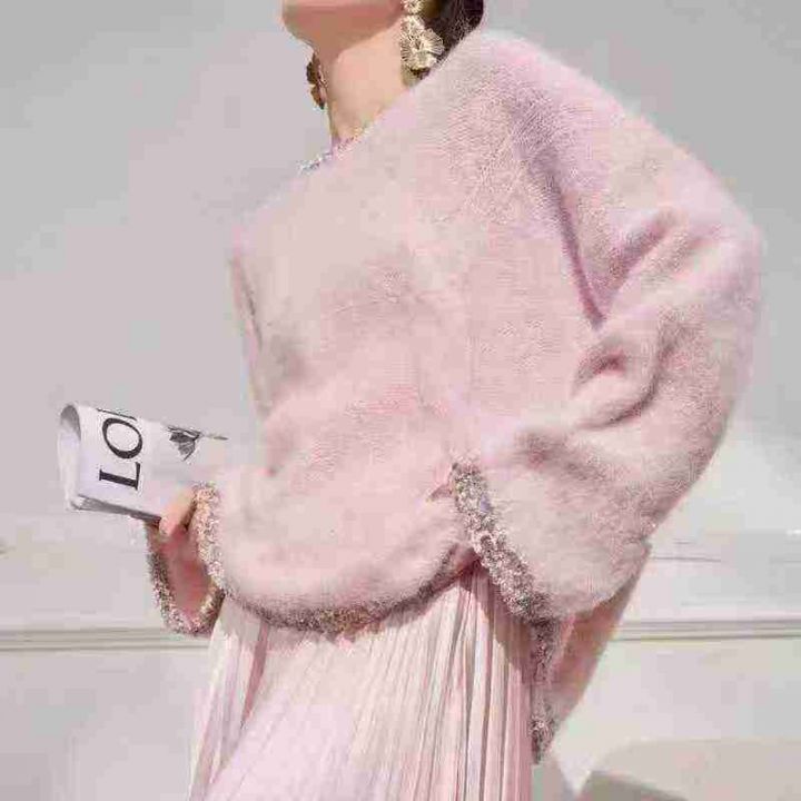 小香风设计感软糯针织百搭毛衣,羊驼毛,面料,[爱心]255件左右,均码,穿80-130斤,万佳档口货,原包装️无瑕疵,[666]实体店品质,分货加一