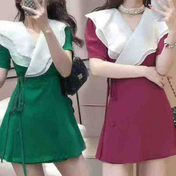 180件韩版假两件小众连衣裙大码夏季新款系设计感收腰...