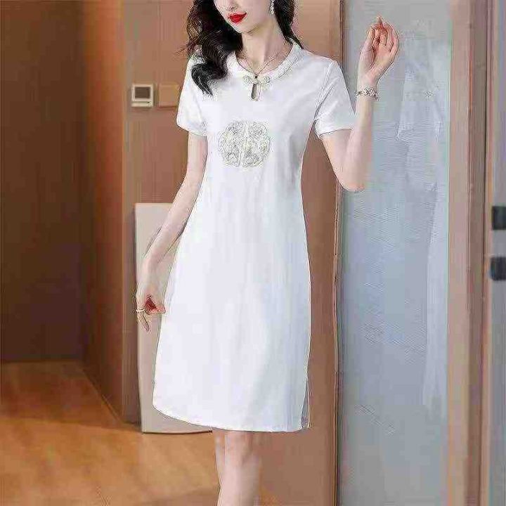 时尚休闲连衣裙女中长款2025年春夏显瘦百搭国风盘扣连...