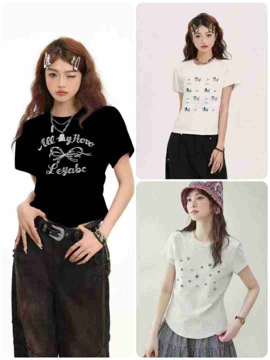 11.8清广州十三行回收3000件新款潮牌纯棉重工烫钻辣妹短t,码数均码可穿80-...