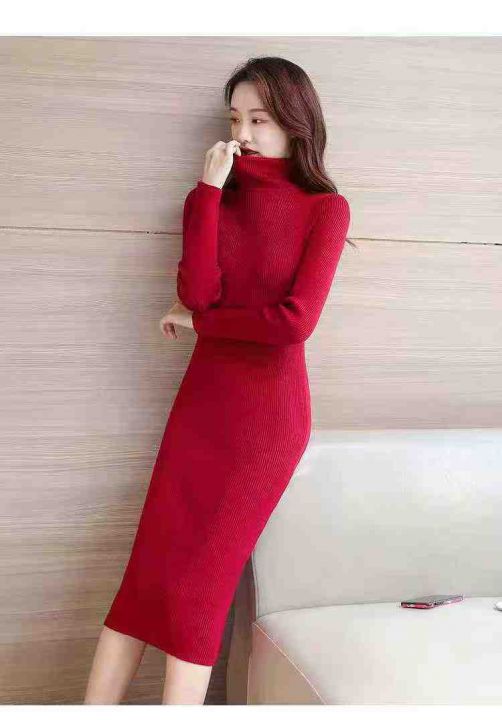 捡漏款,秋冬新款净版简约高领中长款过膝弹力修身毛衣裙,独立包装,均码面料柔软舒适弹力大,89件,全清8.9元超低价秒杀!