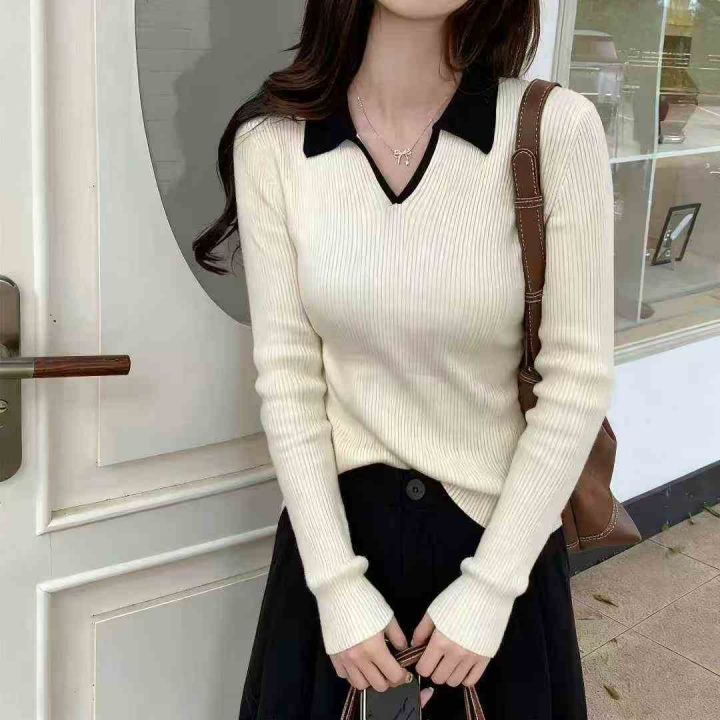 品牌原单秋季新品法式气质高级感Polo领长袖套头毛衣,独立包装带吊牌,均码...