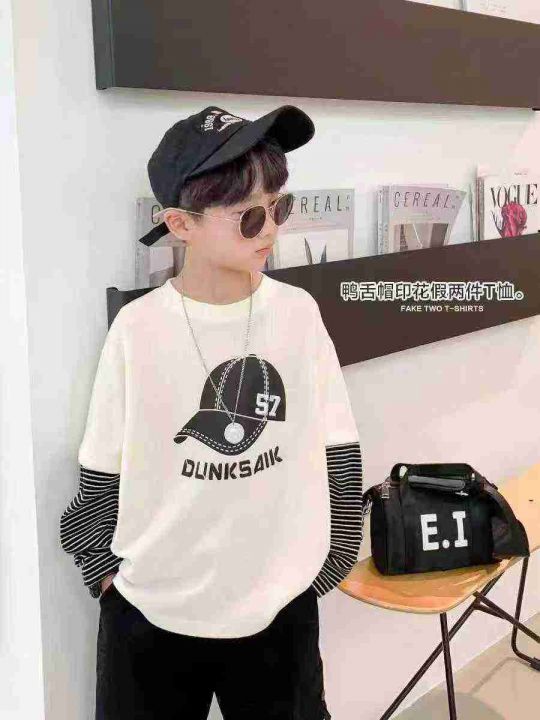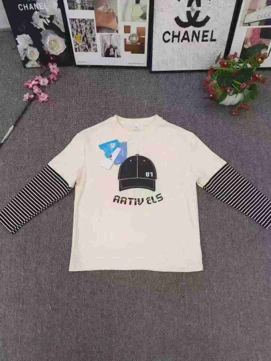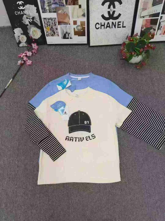 品牌童装2025新款中大童假两件上衣 数量2000件左右 尺码110--160 螺纹棉面料 整款两个色 独立包装带吊牌 货品整洁质佳!