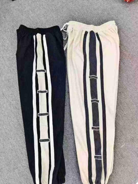 355条加绒卫裤条纹拼接束脚哈伦运动裤男款,码数M-4XL...