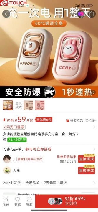 品牌天语5000毫安二合一充电宝暖手宝 334pcs...