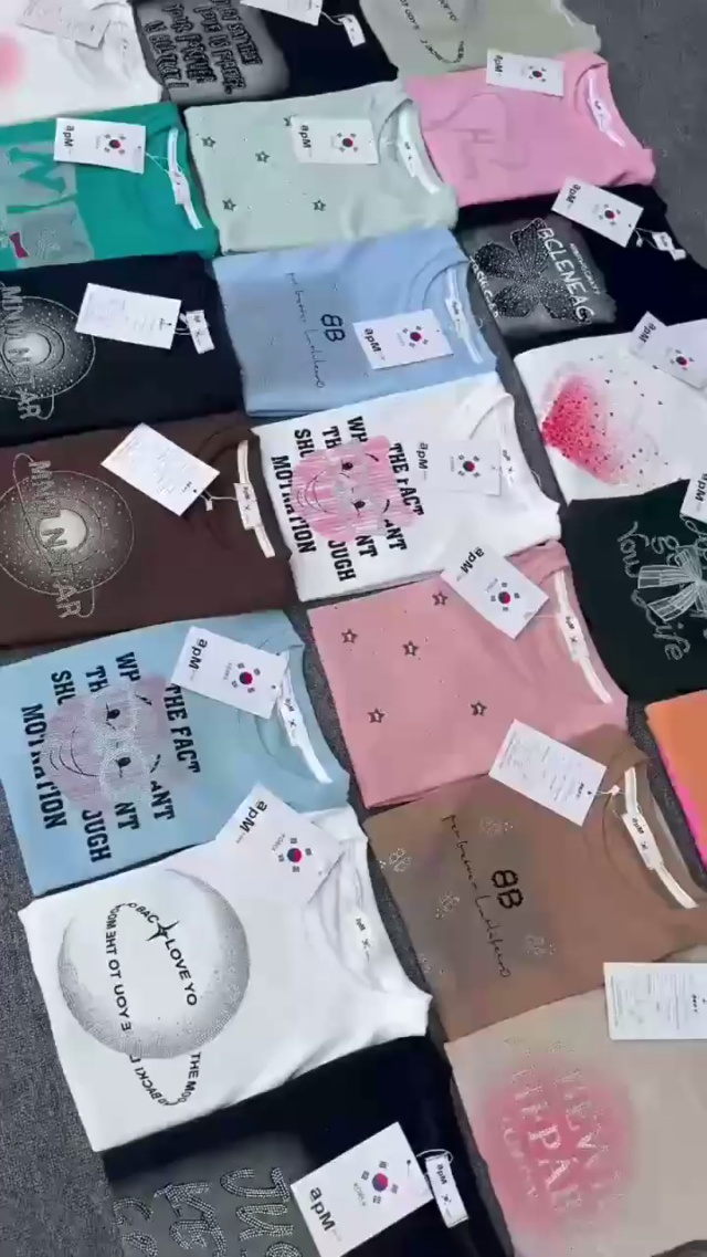 11.8清广州十三行回收3000件新款潮牌纯棉重工烫钻辣妹短t,码数均码可穿80-...