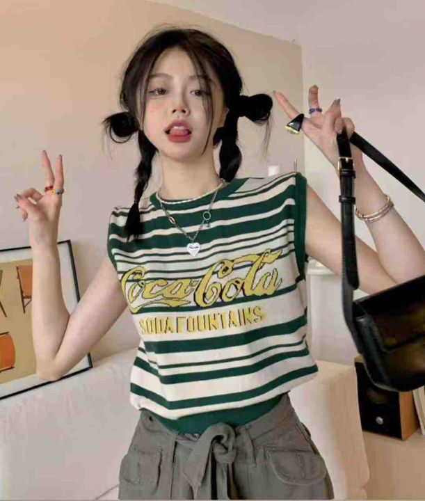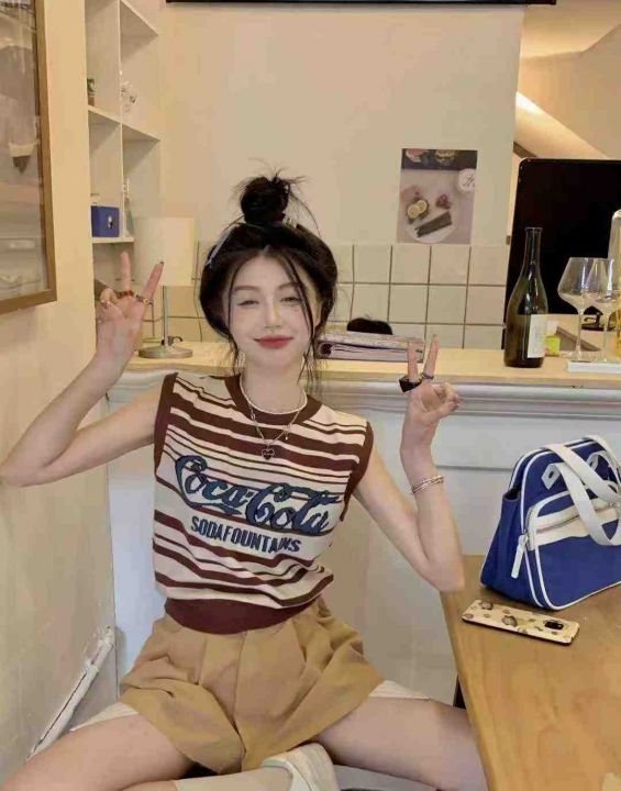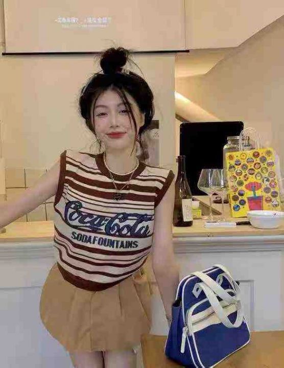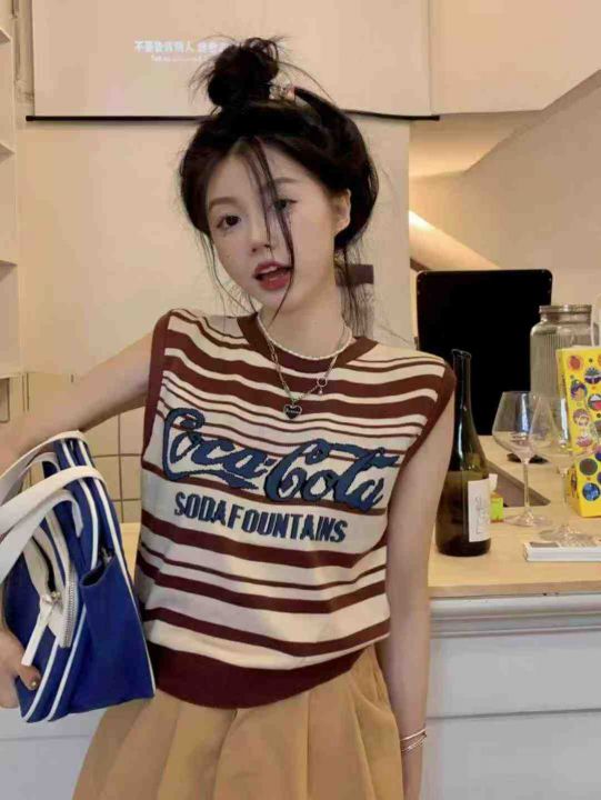 夏季新款法式甜辣复古字母提花坎肩针织背心,独立包装...