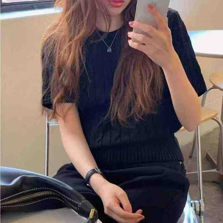 夏季新款韩版复古麻花冰丝圆领短袖针织T恤,独立包装...