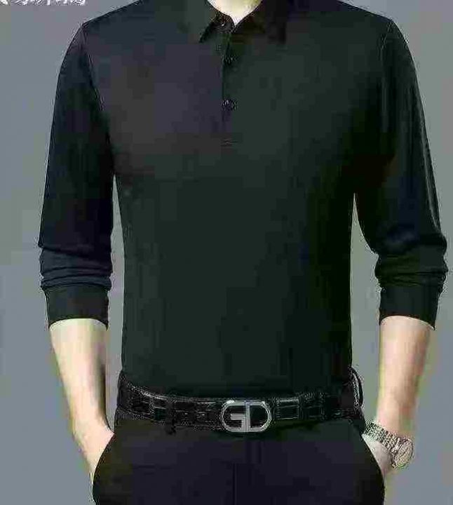 男士长袖t恤翻领秋季薄款宽松体恤打底衫爸爸装上衣Pol...