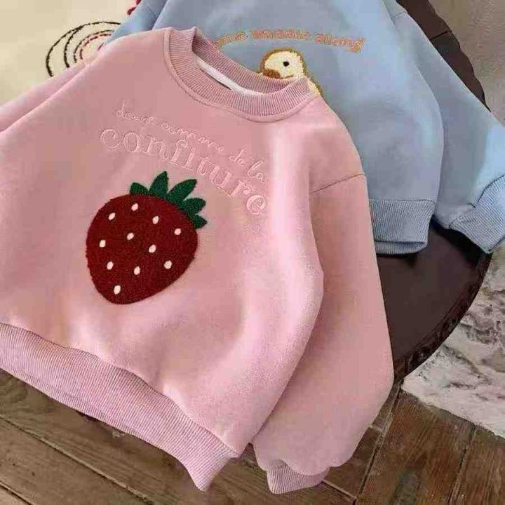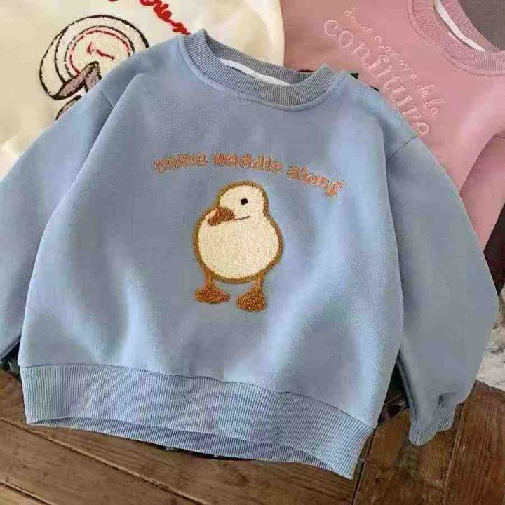 秋冬款中大童卡通可爱毛巾绣加绒卫衣男女宝宝童装,纯棉面料质量杠杠滴,三个色,90一150尺码,320件左右,全清6.8块,分货加一