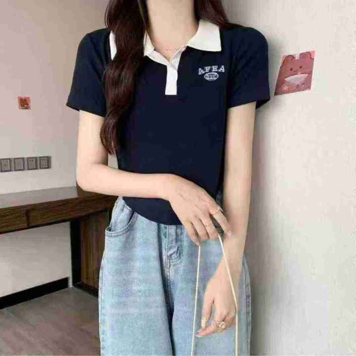 美式polo领短袖T恤女夏季新款设计复古辣妹修身显瘦短款上衣ins潮,s一3XL码,主要是黑色多,纯棉质量好,防水袋装,1580件。全清4.8块,分货加一