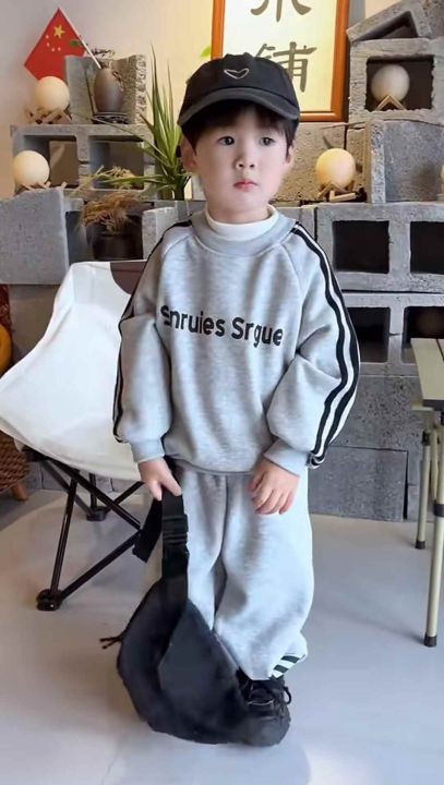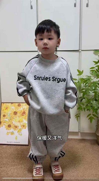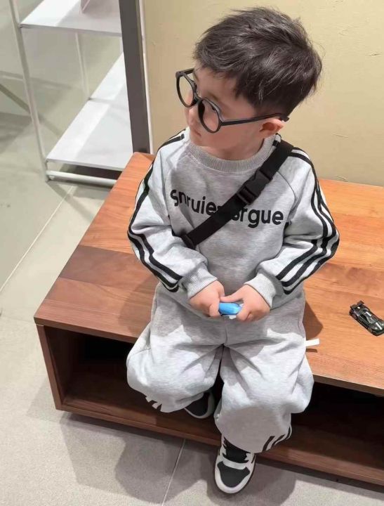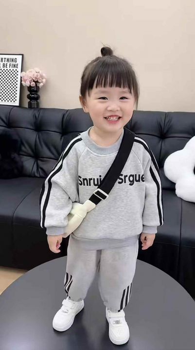 15.99男女童都好穿的灰套装字母印花,设计款出门 3 分...