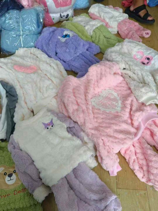 上个家居服毛毛衣套装。80-150码段。2000多件。可分可清。全部独立包装。超值。10.9。 货号:8889