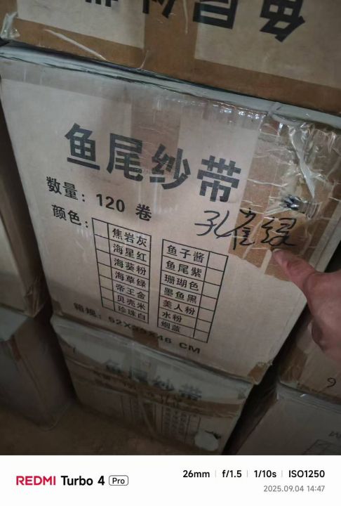 多色鱼尾纱带,约70~80箱,每箱120卷,8000~10000卷,...