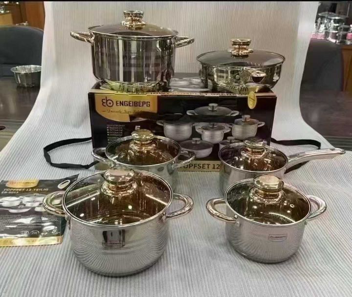 出口外贸12件套,高档不锈钢套锅,高档金色电镀工艺,...