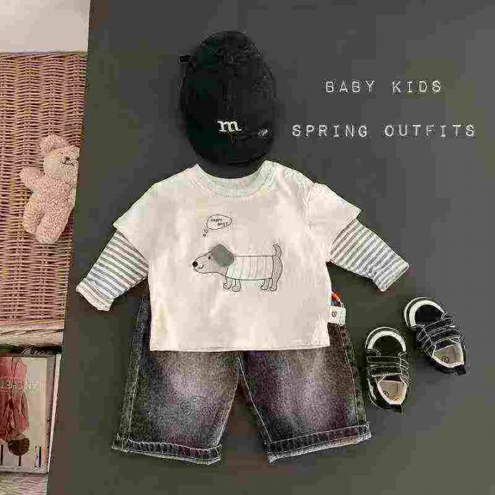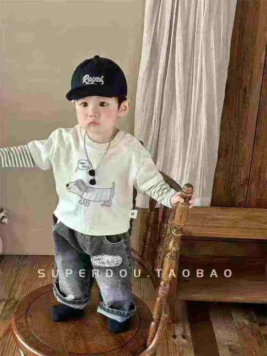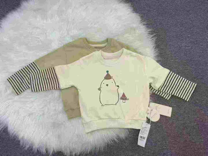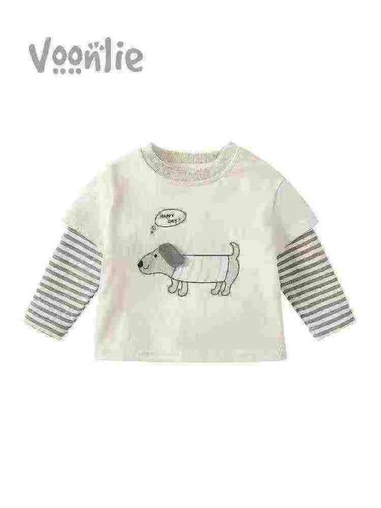 全清5.9,母婴店下架春装宝宝洋气时髦超萌卡通假两件纯棉T恤卫衣,如图1图2整款两个图案两个色,全部原高品质独立包装吊牌,码数90到130,共3000件左右,分货+1