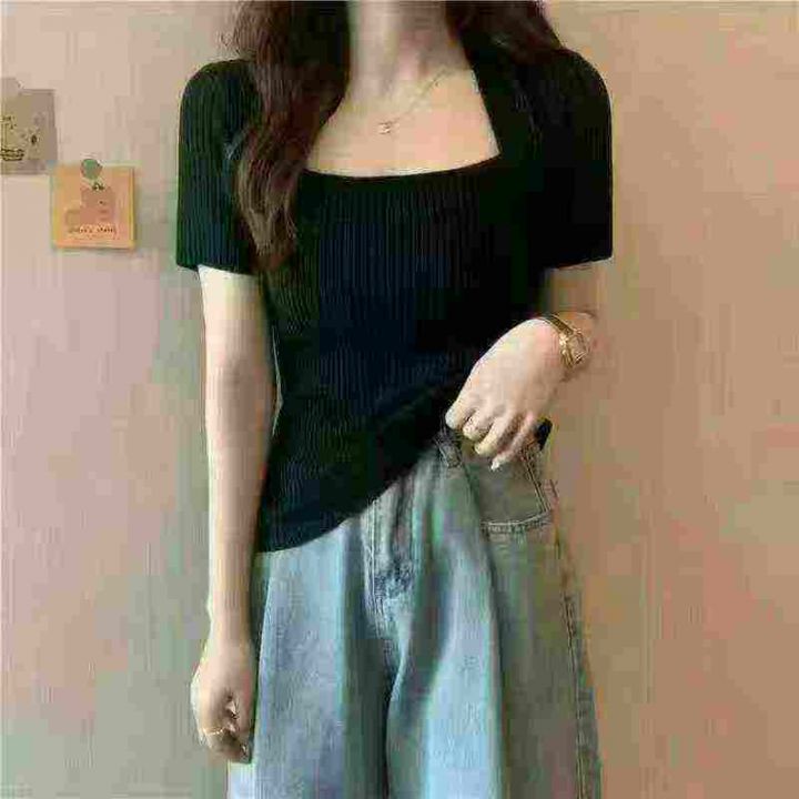 ️全清4.9 新款冰丝针织短袖t恤,靓妹夏季韩版修身显...
