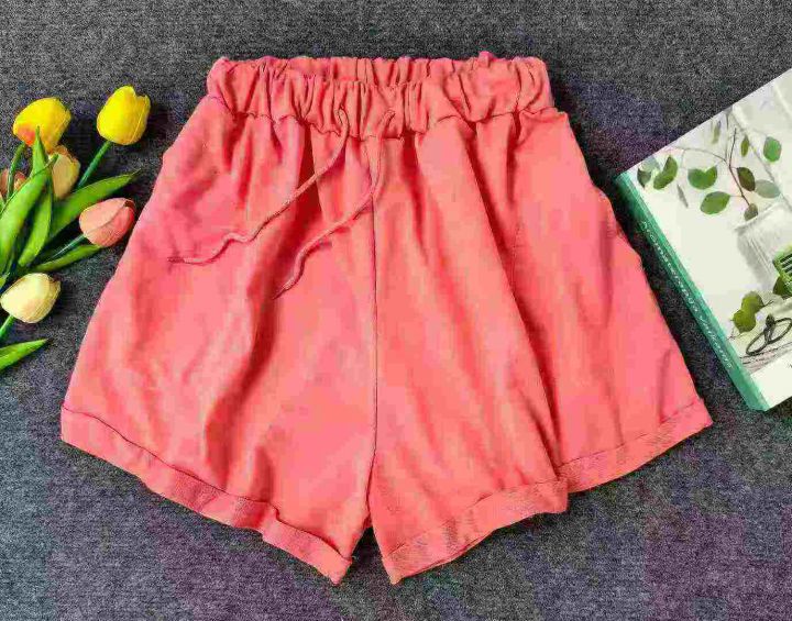韩版时尚女装休闲跑步运动阔腿短裤,松紧腰有口袋居家...