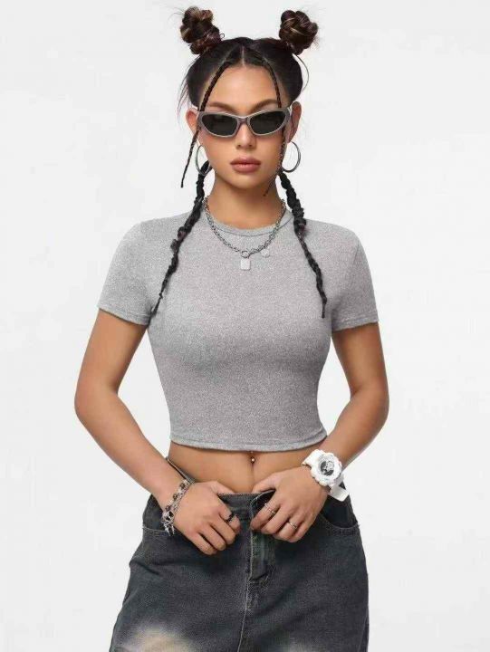 10000多件辣妹短款修身高腰简约露脐上衣,尺码:XS~4...