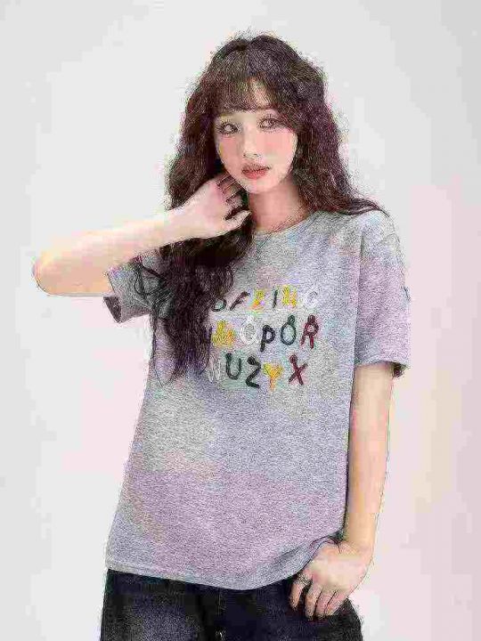 2025新款夏季正肩纯棉短袖T恤女时尚百搭洋气减龄显瘦上衣 中长款,(款号5025#25)独立包装,454件,码数S-XL,分货➕1