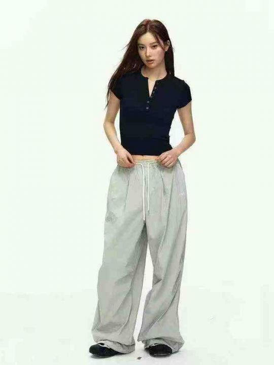 [福]1410件秋冬设计感宽松阔腿拖地休闲长裤,码数:M-2XL,独立包装带吊牌(模特图仅参考)全清7.9分货➕1