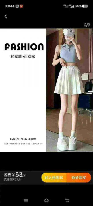 百褶短裙,夏季显瘦A字半身裙,719件,SML,松紧腰,雪纺面料,有内衬,独立包装,全清5.9元,分货6.5