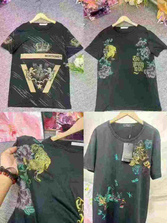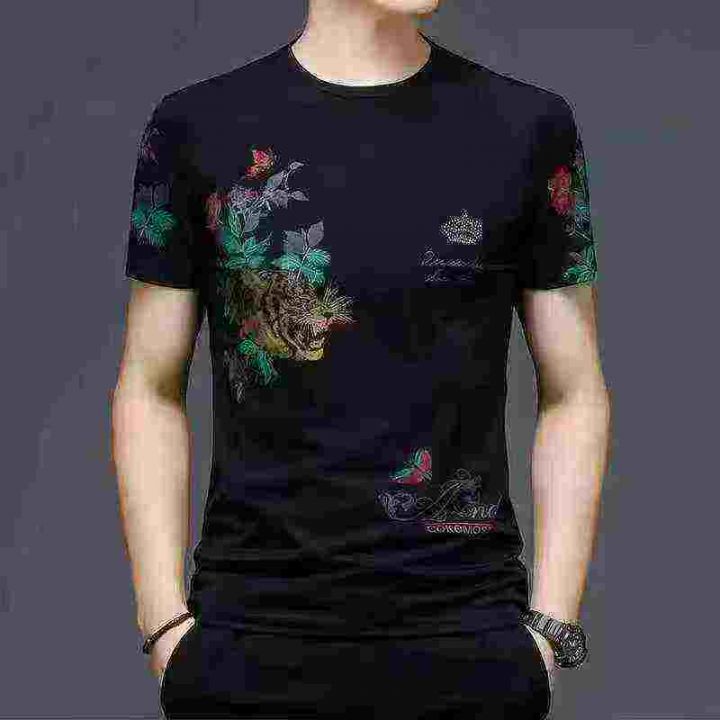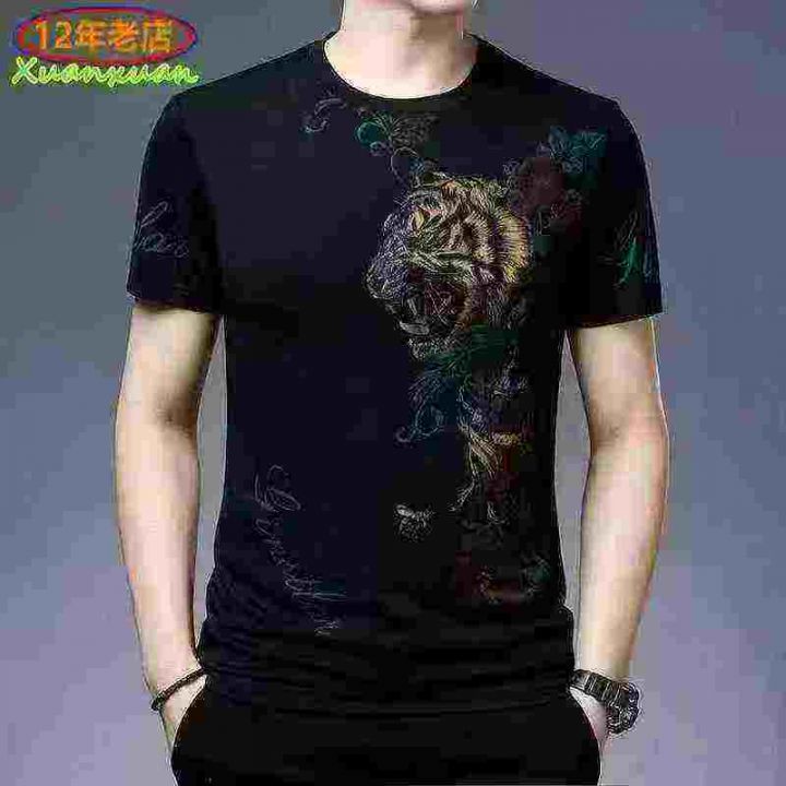 夏季男士短袖T恤印花圆领冰丝上衣中潮流体恤,几个花...