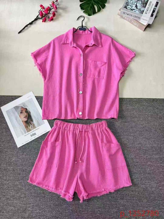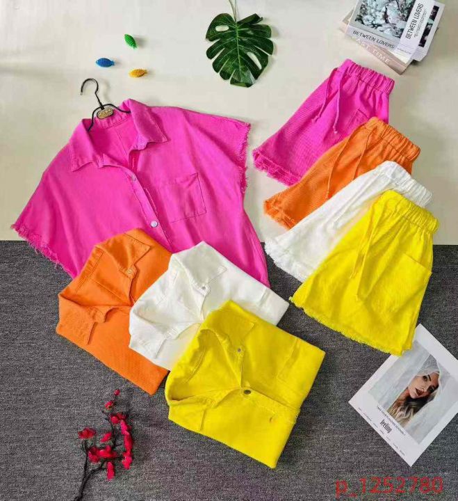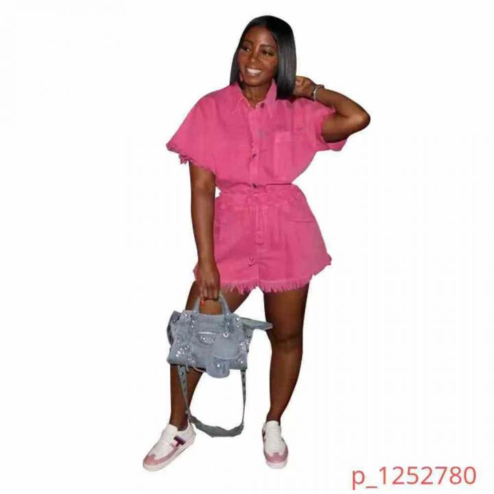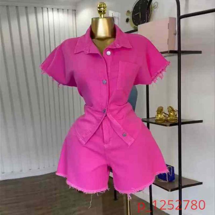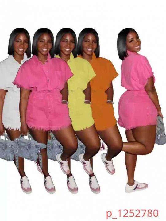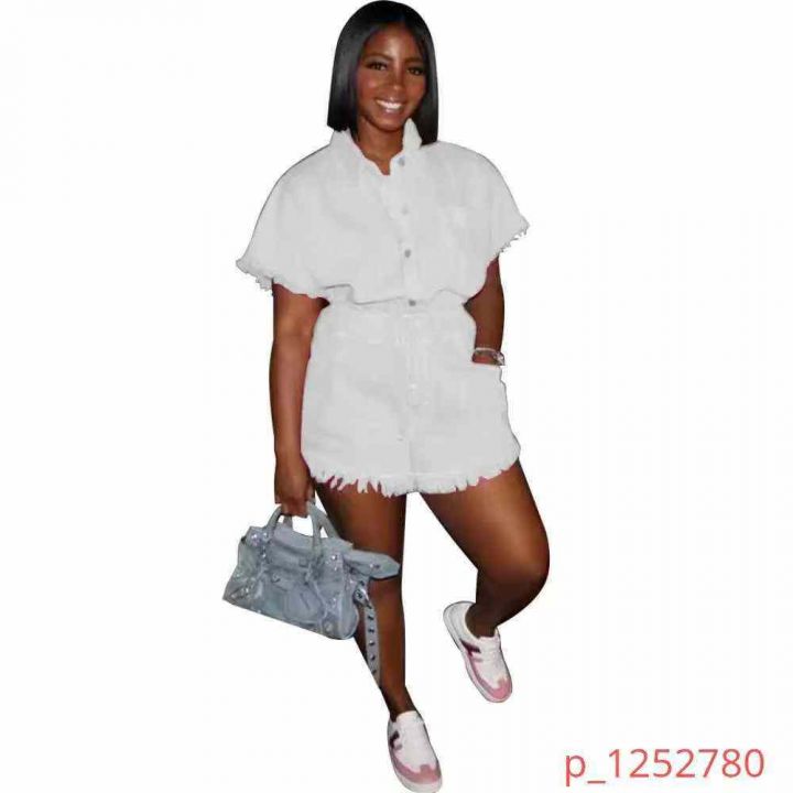 夏季新款时尚翻领短袖牛仔短裤套装 ,数量:140套左右,码数:S-3XL,整款多色,品质好,有独立包装。 _@_@