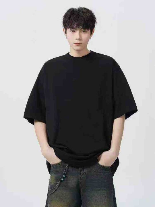 夏季新款高品质高克重(220克)男士纯棉大版宽松落肩T...