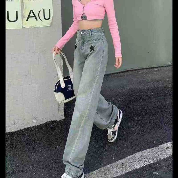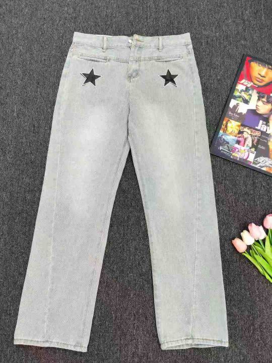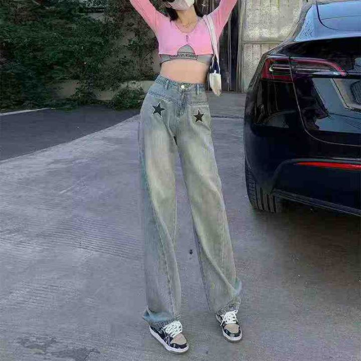款号8815美式复古高街星星牛仔裤女春夏秋新款宽松阔腿高腰显瘦长裤子,独立包装 数量230件 码数S-2XL 全清11.8