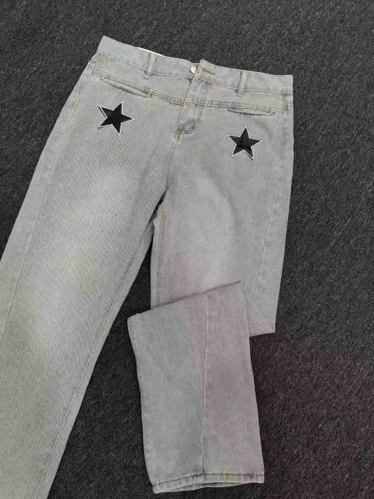 款号8815美式复古高街星星牛仔裤女春夏秋新款宽松阔腿...