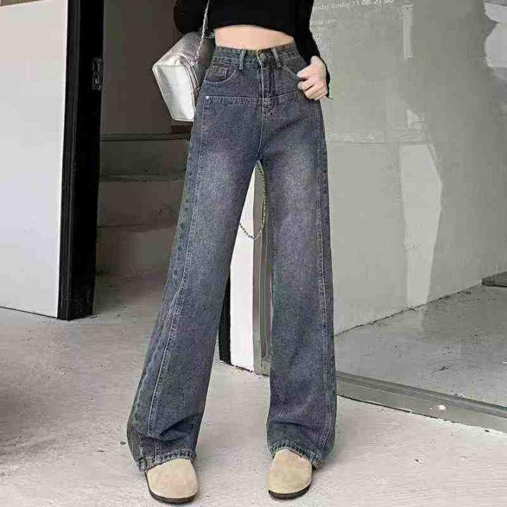 款号8825阔腿女装牛仔裤高腰宽松垂感拖地裤直筒长裤,...