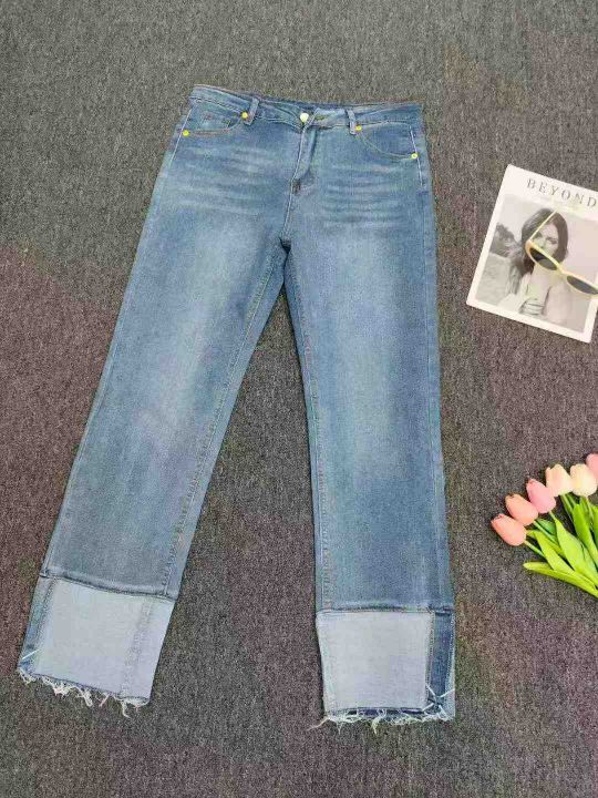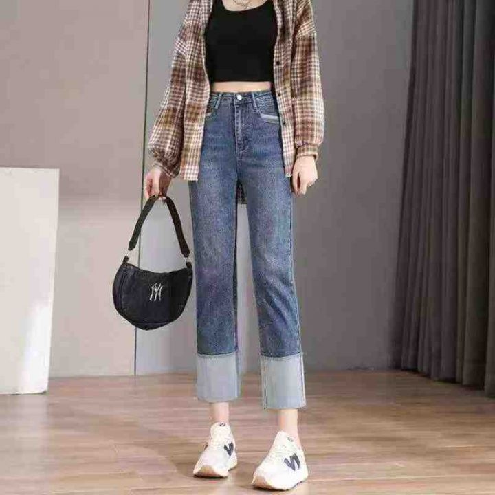 翻边直筒牛仔裤女弹力春秋夏复古卷边裤脚拼接小个子烟管裤 独立包装 码数S-2XL 数量250件 全清13.8