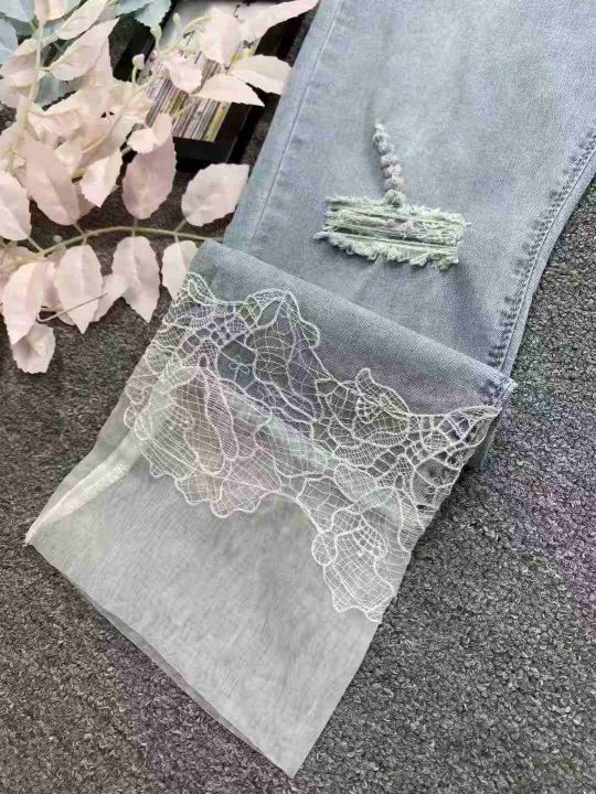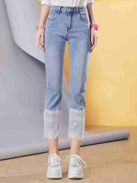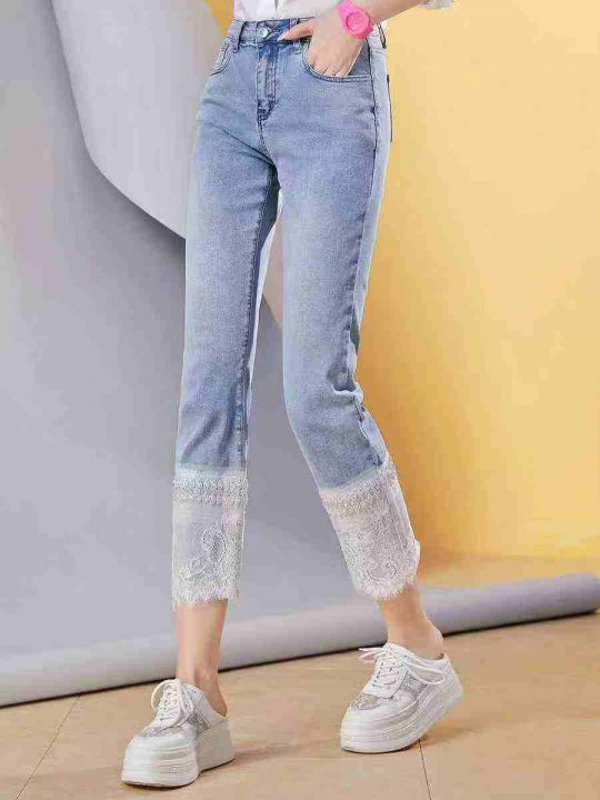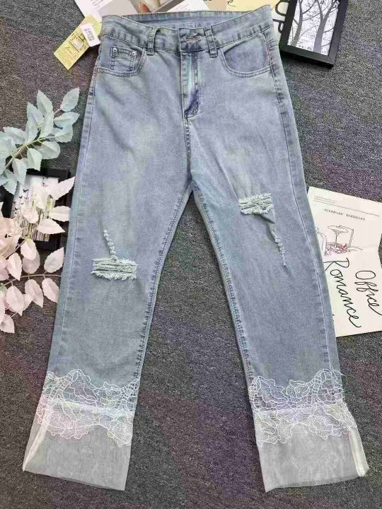 蕾丝拼接九分牛仔裤☕️230条全清10.8元 分货11.8 元 ...