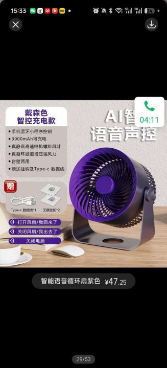 智能语音风扇 3600个便宜处理 超值3600mah大电池...