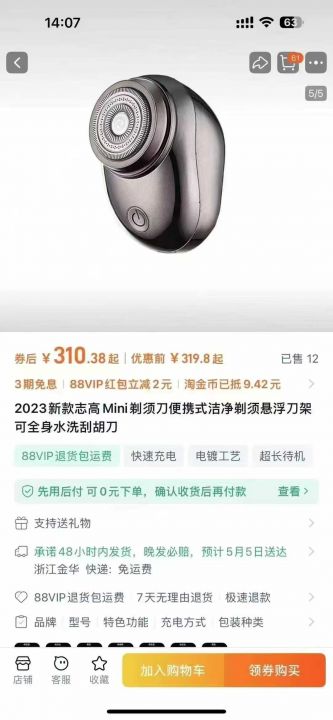 品牌志高剃须刀到货1500个,天地盖礼盒包装 ,一箱 90...