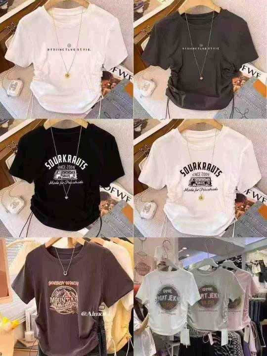 ☕️抽绳韩标辣妹短袖T20000件全清11.8元,200件起12....