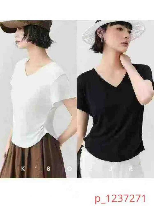 外贸款小V领七分袖T恤女早秋季大码胖mm内搭打底衫不规则上衣码数:XL-5XL...