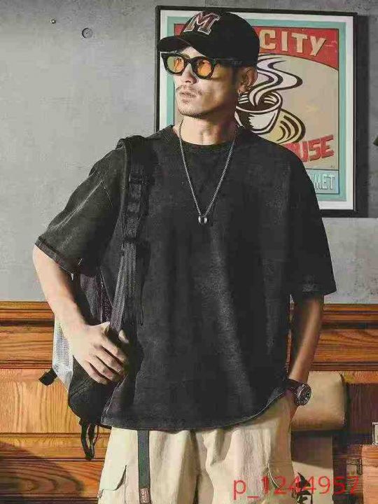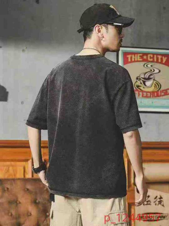 扎染碳灰色纯棉男T恤,6.8纯棉面料,外贸大版型,全...