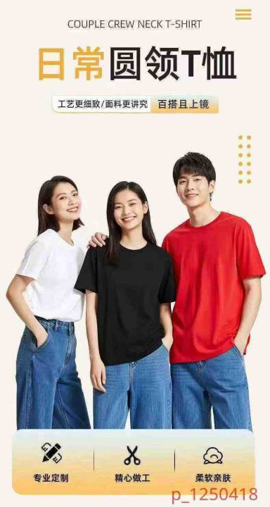 男女情侣同款纯色运动休闲短袖纯棉T恤,独立包装,后...