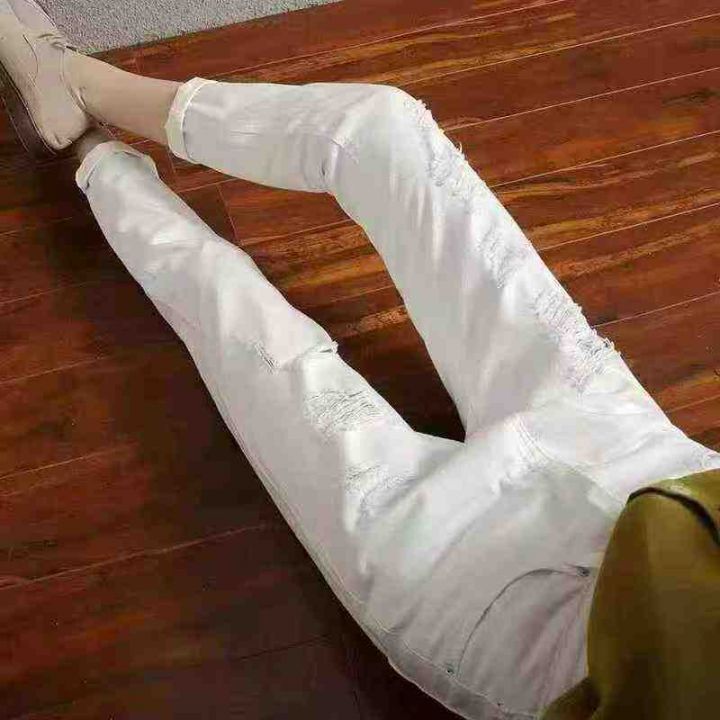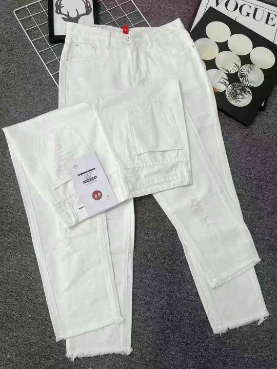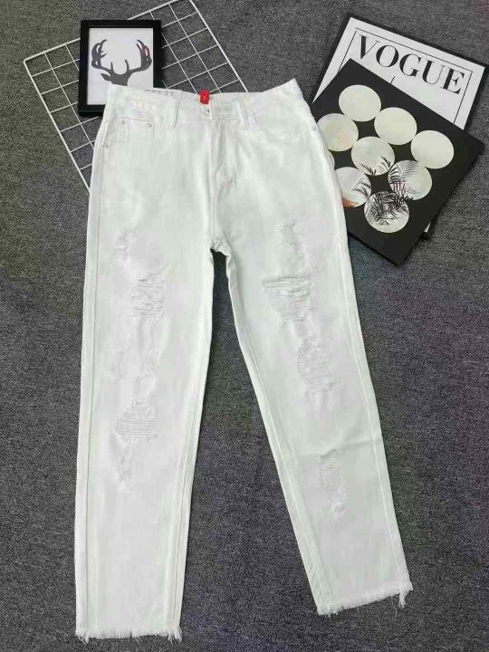☕️168条全清11.8元,分货12.8元,S到2xl码数,质量很好白色很干净,破洞牛仔裤女九分裤超柔软春秋新款百搭哈伦宽松