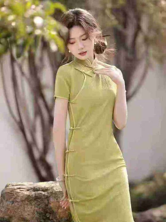 民国复古设计感半开襟长款旗袍女,[爱心]90件左右,码数S-2XL,穿70斤-140斤,万佳档口货,原包装️无瑕疵,实体店品质