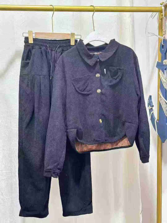 翻领灯芯绒保暖套装女2025冬季加绒加厚宽松显瘦卫衣直筒裤两件套,数量230套,码数m-2xl,独立包装,全清18.8元