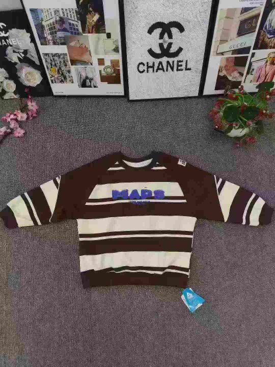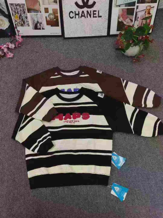 品牌高品质童装2025新款条纹卫衣 数量400件左右 尺码110--160 整款两个色 手袖带点小设计 独立包装带吊牌 货品干净整洁质佳!