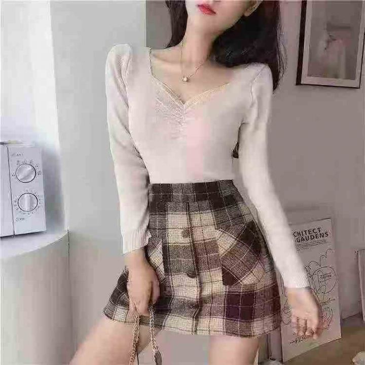 v领针织外穿内搭设计感小众长袖针织毛衣打底衫,独立包装,六个颜色,均码...