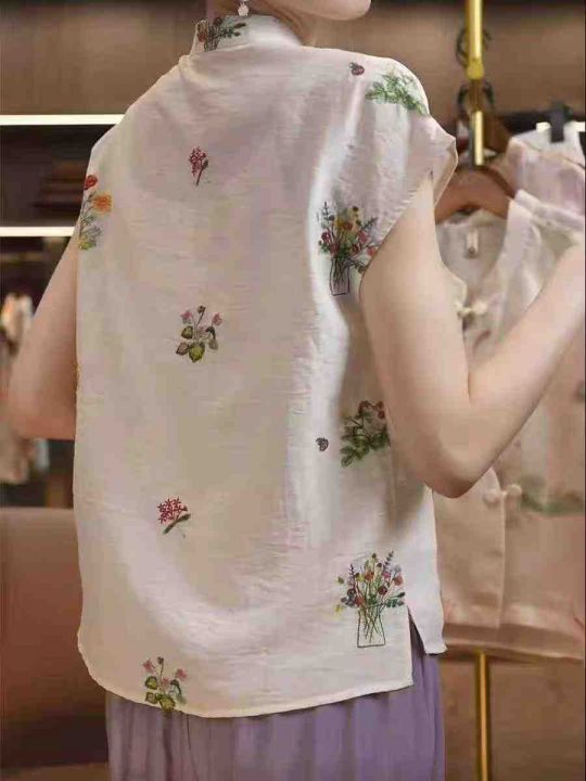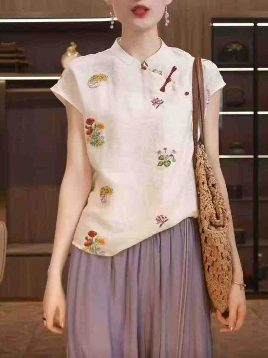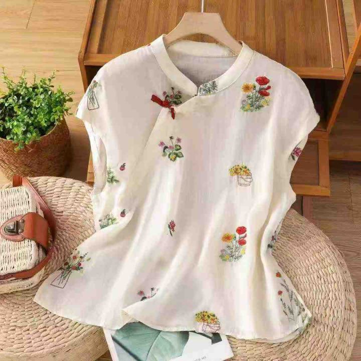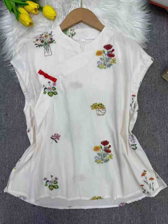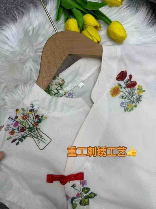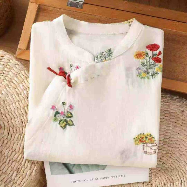 重工刺绣新中式国风绣花宽松舒适盘扣衬衫上衣,独立包装,麻棉料透气舒适,重工艺高品质[强],码数1-4,数量:1049件,分货加1(货号0909#26)