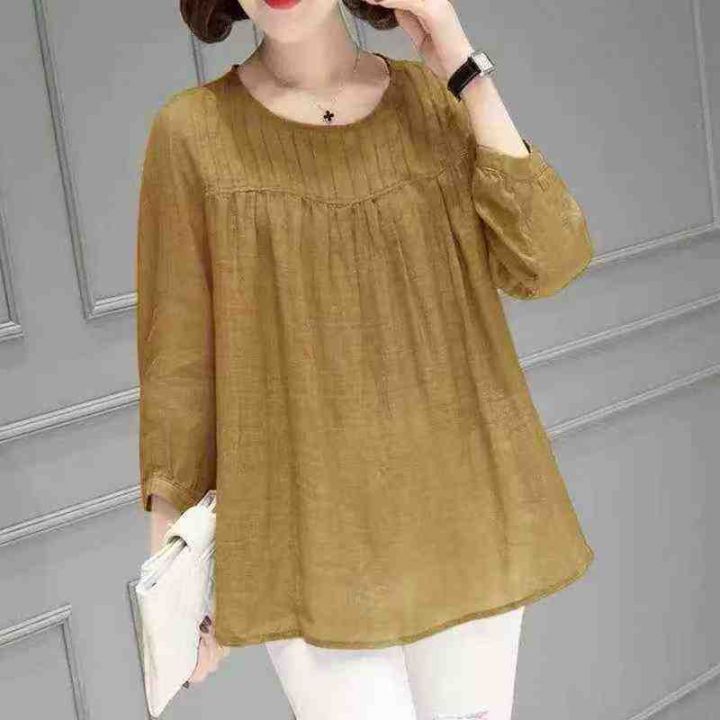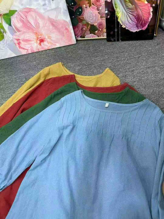 春夏文艺棉麻t恤女式九分袖宽松娃娃衫上衣中年套头亚麻衬衫大码,整款4色,黄色为主,其他只有几十件,独立包装,货品干净,337件,4.8清,分货加1