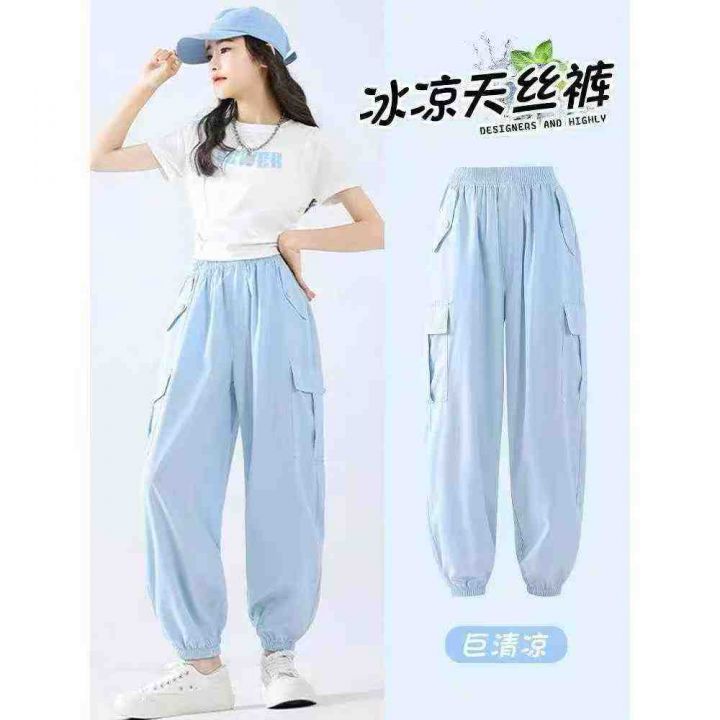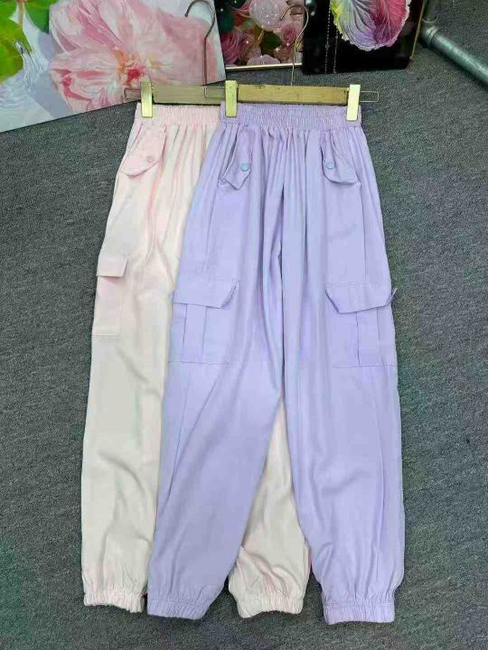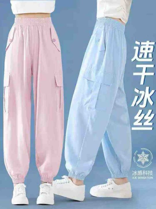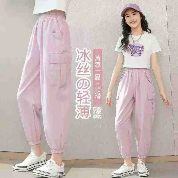 女童夏季裤子2025新款儿童工装裤休闲运动裤中大童女孩冰丝裤,整款3色,蓝色只有几件,粉色紫色为主,独立包装,货品干净,大概码数120,150,160,170,大码多,1570件,7.8清,分货加1