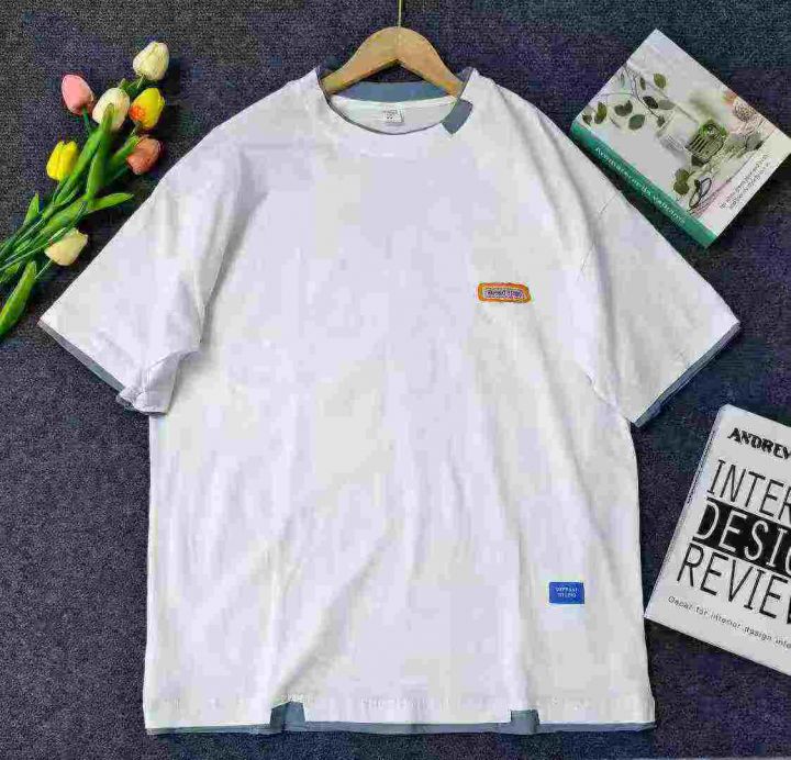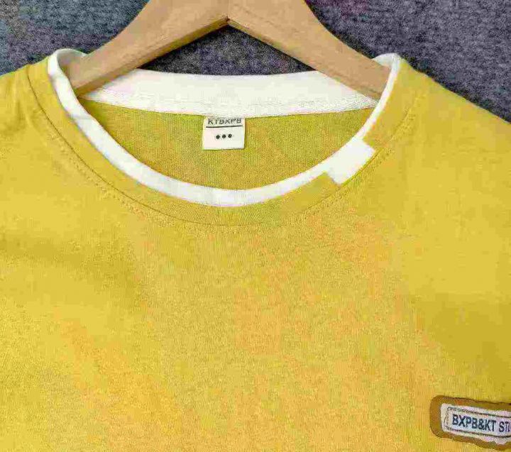 假两件宽松纯棉T恤,男港风潮流百搭痞帅落肩大板T,438件,M-5XL,黄色为主,后领包边过肩,独立包装,全清6.8元,分货+0.5