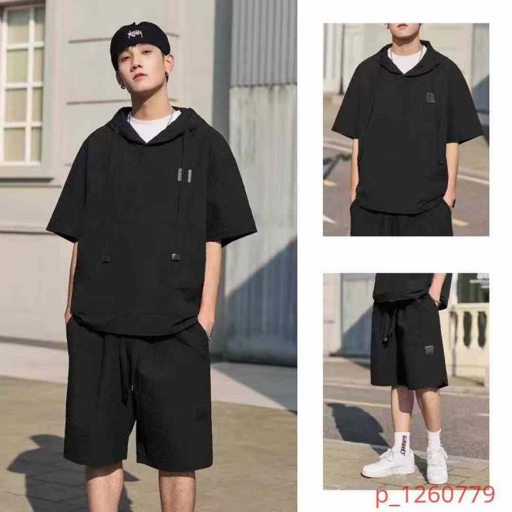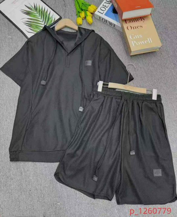 华夫透气舒适面料潮牌男士短袖短裤休闲运动宽松两件套套装,独立包装,单色单款,码数1-6码,数量234件,货号0910#27 _@_@